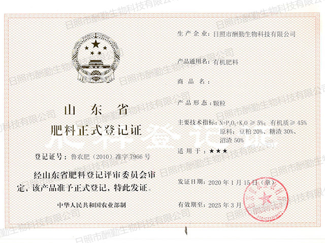 魯農(nóng)肥(2010)準(zhǔn)字7966號(hào)
